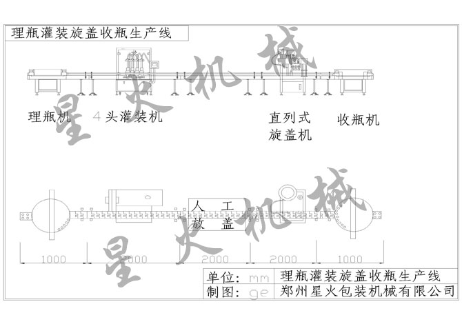 人工放瓶6灌裝壓蓋噴碼PE收縮機