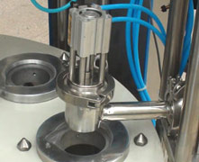 ○ 該灌裝生產線具有六個同步注脂灌裝頭,油脂可均勻地被擠壓灌裝到容器里。
