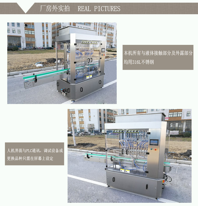 5、具有無瓶不灌裝、自動進瓶出瓶、自動定位灌裝、自動控制液位等功能,自動化程度高;灌裝嘴設計科學合理,配防滴漏裝置,確保灌裝不滴漏,保證物料瓶及設備的干凈衛生。