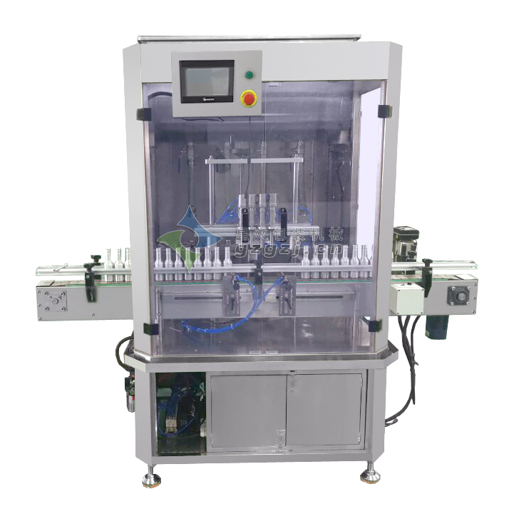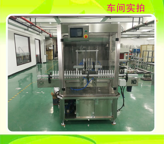該全自動膏體灌裝機是我司集多年生產經驗,并引進吸收世界先進技術研制而成的新一代全自動膏體灌裝機。設計合理,結構緊湊,外形美觀,具有性能穩定可靠、灌裝精度高、適應性強、操作簡單、維護方便等特點,采用世界知名品牌的電器和氣動元件,故障率低,性能穩定可靠,使用壽命長;與物料接觸均為不銹鋼制作,拆裝簡單,易清洗,符合食品衛生要求,灌裝嘴設有防滴漏裝置,確保灌裝無拉絲、不滴漏。不需要更換零件,即可快速調整更換不同形狀規格的瓶子,適用性強,灌裝量和灌裝速度調整簡單,設有無瓶不灌裝功能。