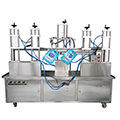 乳液灌裝旋蓋聯動一體機自動灌裝,自動落外蓋,自動旋蓋、不合格品自動剔除..
