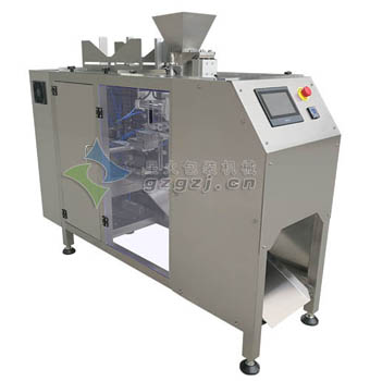 1、本機功能:流體、半流體的輸送,袋成形,重量調節、真空封口、切斷、計數等功能;采用微電腦控制光 電跟蹤糾編系統,配用高精度步進電機,精確每個包裝袋圖案的同一位置,控制系統完成整機的同步、定長、定位及速度,自動診斷故障功能??蛇x擇配裝色帶打碼 機或鋼印打碼裝置。