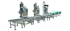 全封閉稱重灌裝流水線是針對于5-25公斤大規格的鐵桶、塑料桶等容器的自動化灌裝,大型定量灌裝生產線整合了自動上桶、自動定位、稱重灌裝、自動上蓋、貼標噴碼等生產工序