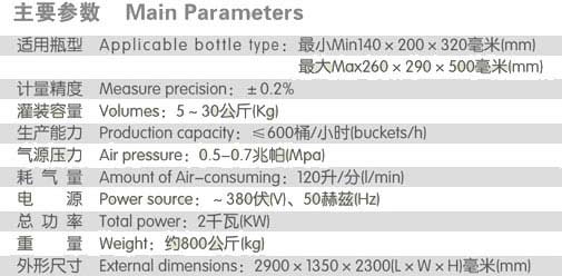 該機每一灌裝單元均由高精度稱重傳感器、控制儀表和灌裝速度控制閥組成可實現快、慢速灌裝。