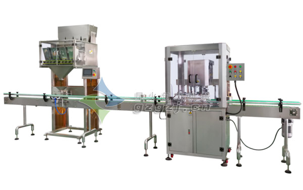塑料瓶裝食用鹽灌裝生產線由全自動顆粒灌裝機和封口機組成,其中全自動顆粒灌裝機采用了先進的PLC+伺服馬達+觸摸屏等先進模式,整套設備性能穩定、精度高,全不銹鋼結構,整個灌裝過程采用了智能的控制系統,能完成瓶子自動定位、充填及計量等工作,他由一個充填頭、一臺鏈板輸送帶及一個定位裝置組成,是一款經濟實用的粉末及小顆粒自動灌裝機。另外該套設備配有位置合理的高度調節手輪 ,方便調整機頭高度。其配套裝置包括:氣動閥門裝置、防漏離心裝置、托罐裝置、水平開啟式料箱、在線稱重計量裝置、除塵裝置。