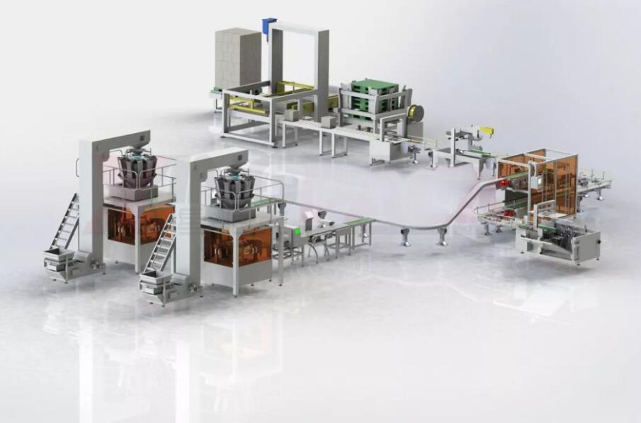 2、袋裝顆粒包裝線全不銹鋼材料,美觀、防銹;