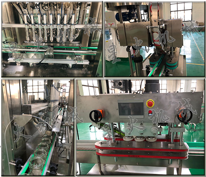 該蜂蜜灌裝生產線是星火包裝機械公司借鑒國外先進技術,自行研制開發的蜂蜜灌裝生產線。該機采用活塞計量,集機電、氣動于一體,由PLC控制,結構緊湊,設計合理,具有灌裝精確,運行穩定可靠、工作效率高、壽命長等特點。全自動蜂蜜灌裝生產線設備廣泛適用于各種含顆粒的半流體、膏體、醬料、沙拉醬、芝麻醬等的灌裝,有多種灌裝量可供選擇。全自動蜂蜜灌裝生產線設備含有洗瓶機、隧道滅菌烘箱、旋蓋機、貼標機等設備。
