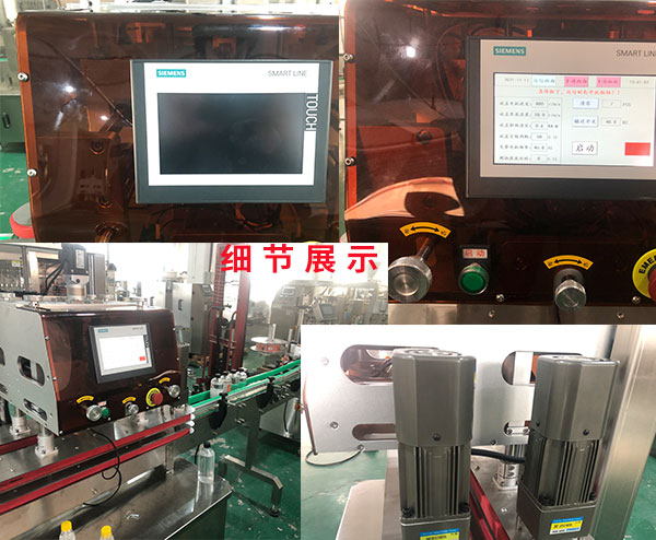 噴霧瓶自動旋蓋機適用于不同的瓶子的噴霧蓋旋蓋,灌裝頭插入瓶口灌裝功能,自動上瓶,上蓋,自動旋蓋,機器速度無級可調,適用不同產品的灌裝要求。全自動觸摸屏操作設計,材料,制造,裝配,調試符GMP要求整機凡接觸物料及某些相關部位均采用優良不銹鋼制作整機運行平穩可靠,無噪音和其它污染。需要清洗部位均選用快換裝置,拆洗方便臺面防水設計,方便用水清洗。
