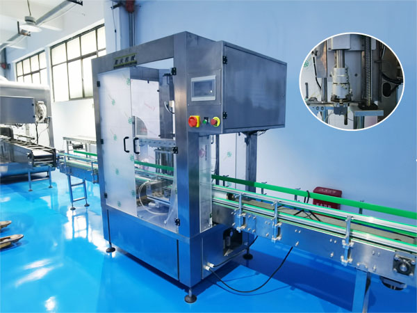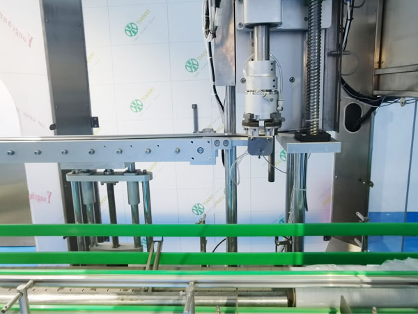 大型旋蓋機械是一款高度自動化的機械設備,它可以根據自身的機械性能與灌裝機、輸送機、貼標機等形成聯動生產線,塑料桶自動旋蓋機的工作方式非常的智能,它通過傳送帶系統帶有商品的塑料桶抵達旋蓋工位后,以定位器將塑料桶固定在旋蓋位置,此時,塑料桶自動旋蓋機的旋蓋頭開始下降并抓緊蓋子,然后按照工作人員設定的扭矩值旋轉至指定的緊固程度,在整個生產過程當中,大型旋蓋機械會根據實際情況自動調整生產速度和力度以確保極佳的生產效果。